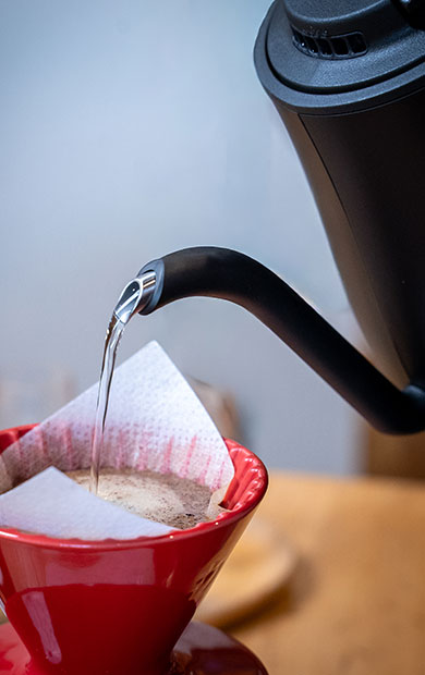 如果是剛接觸咖啡的新手,可以先從簡單開始,不需要昂貴的設備,一包濾掛咖啡、一支象印快煮壺就可以在自己的小空間品嚐一杯美好。 象印設計的切割細口可以精準地控水,為手沖增添更多趣味、穩定性與可能性,而足夠的溫度更是讓咖啡風味完整綻放的關鍵。