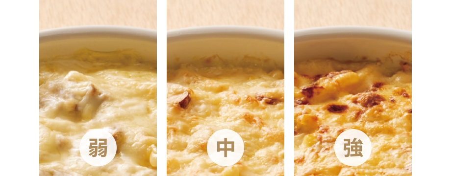 可選三段烤色「弱、中、強」,讓料理變化更多元