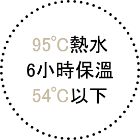 ※1 保溫效力:將商品直立放置,於室溫20±2℃時加入熱水,待水溫降至95±1℃後靜置1小時及6小時,在瓶頸下方所測得的水溫。
